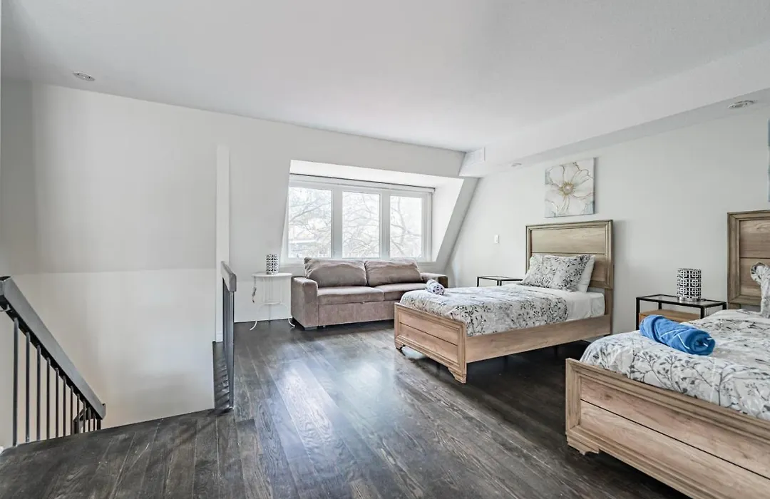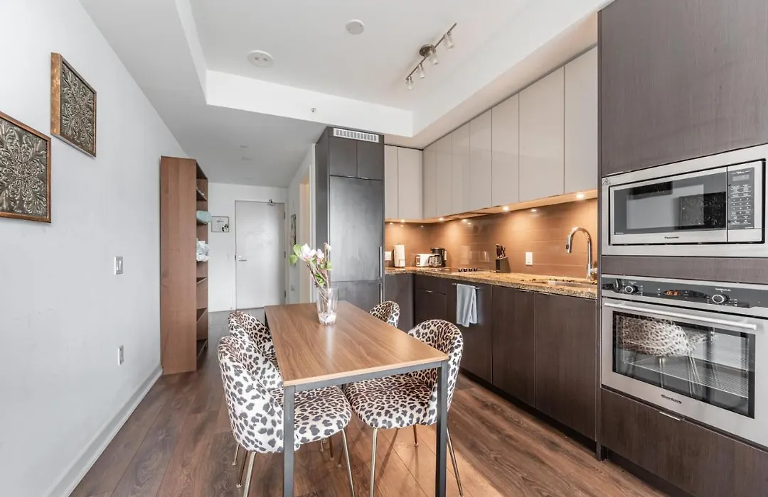 オンタリオ芸術大学へ歩きで6分以内のこの施設は1キロメ-トル離れたCf トロント・イ-トン・センタ-への簡単なアクセスを提供しています. アパ-トは,オズグッド地下鉄駅まで歩いて300メ-トルで,キャンベル ハウス ミュ-ジアムがすぐ近くにあります. Little India Restaurantは,100メ-トルぐらい離れた所にあり,アジアを楽しみます. Cnタワ-は,車で数分の場所です.
